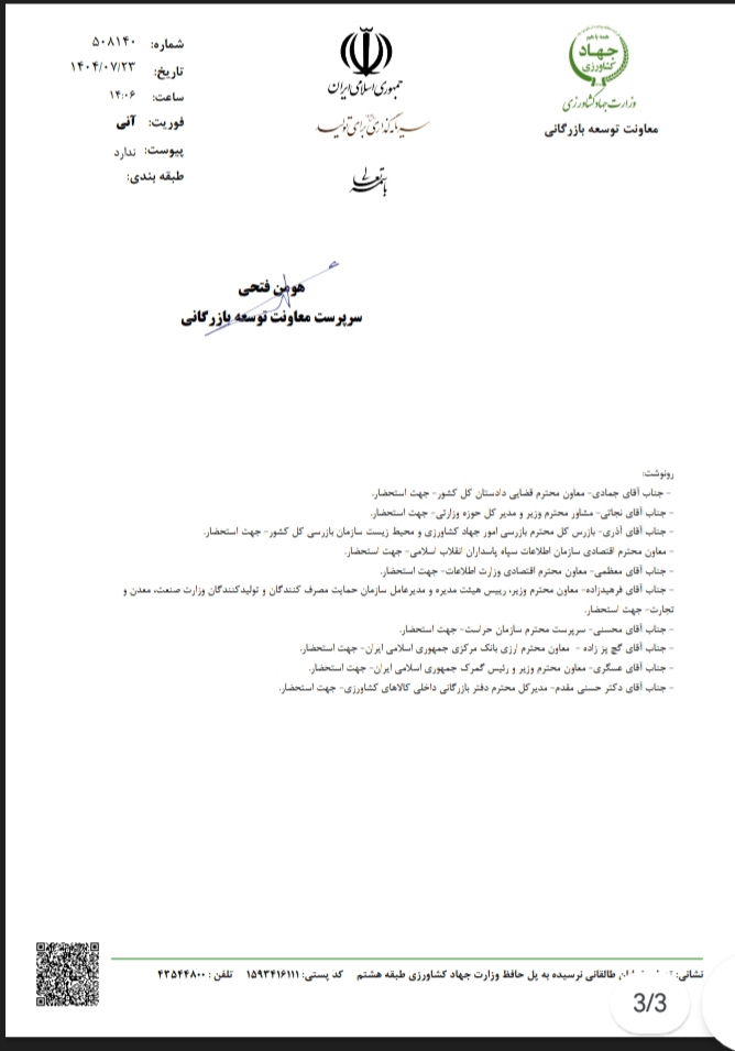 معرفی شرکتها به وزارت جهاد کشاورزی
